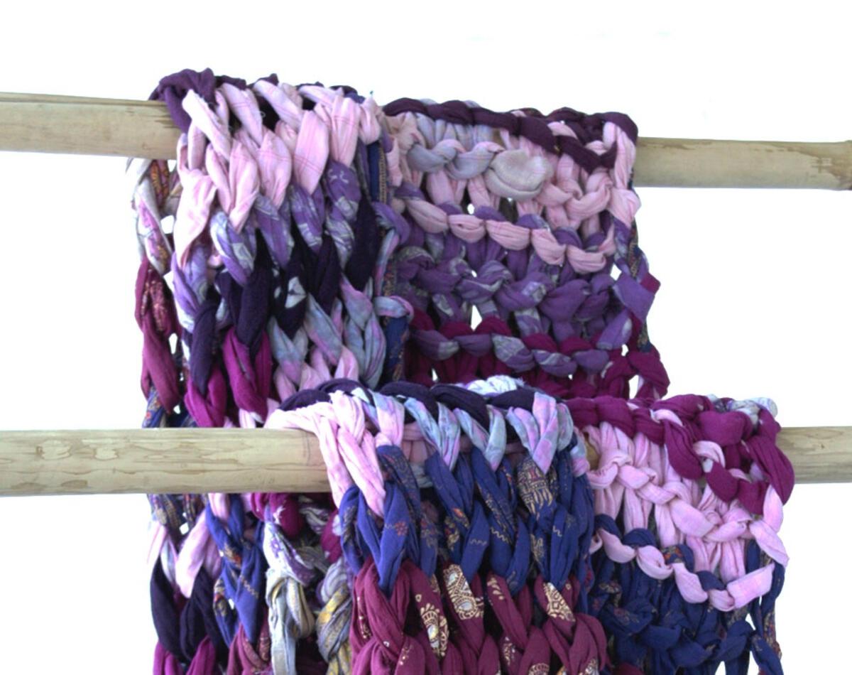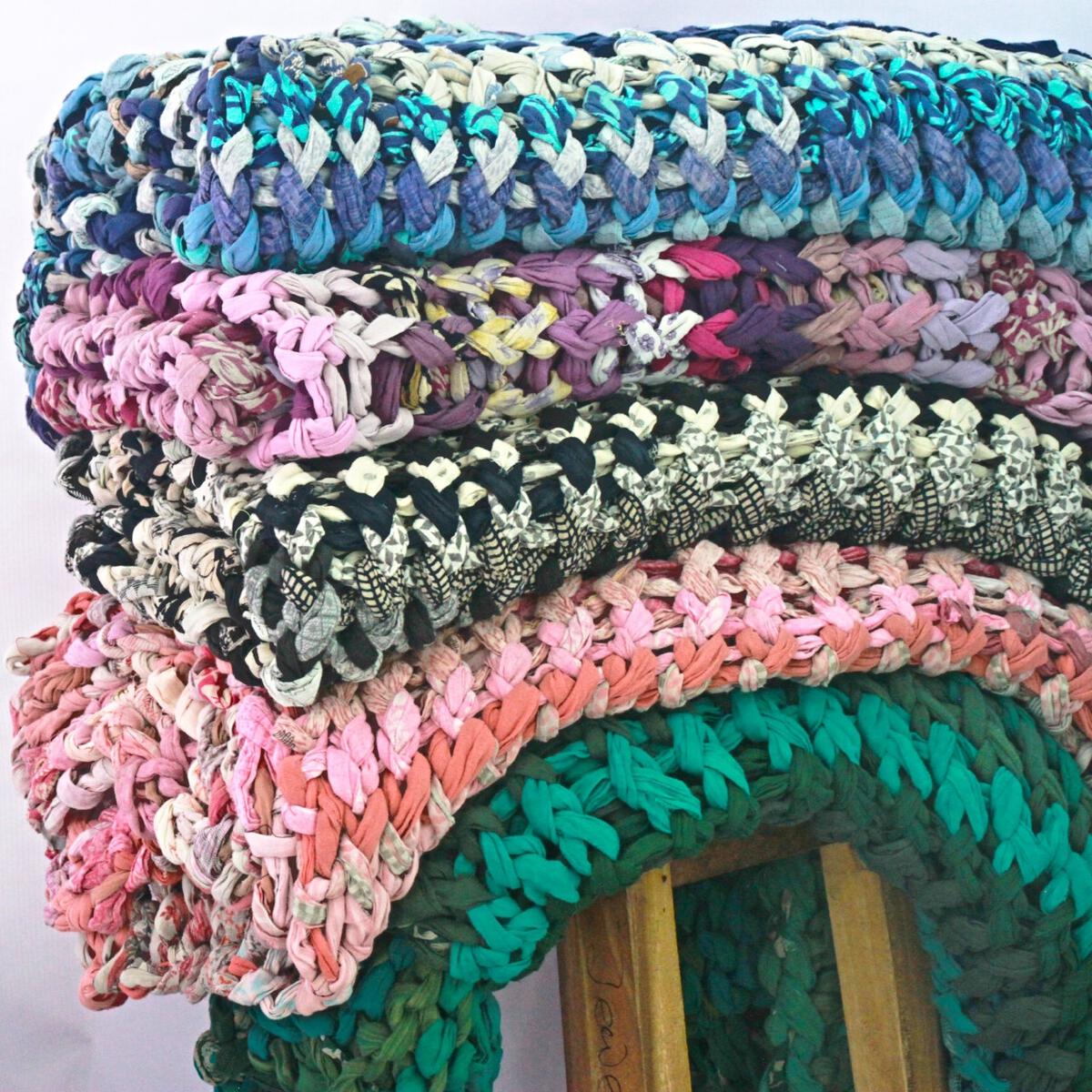 Bold, unique, each one one of a kind, our small size Chunky Knit Blanket comes in four colour options – neutrals, blues, greens, and pinks/purples.