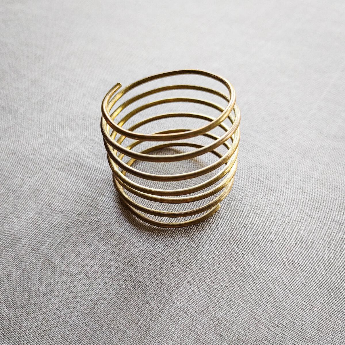 Brass wire is twisted by hand into coil napkin rings, adding just the right touch to your table setting.