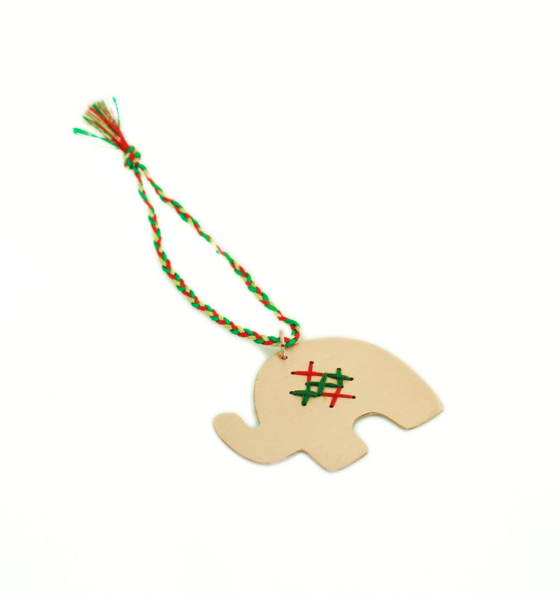 This unique elephant ornament is a symbol of wisdom, luck, and protection—making it a thoughtful gift for a baby shower, birthday, housewarming, or any special occasion. Its timeless design makes it perfect for year-round décor: hang it in Celebrate love, new beginnings, and meaningful craftsmanship with Basha’s handmade metal elephant ornament, beautifully crafted in Bangladesh from recycled metal. Each piece begins as discarded metal sheeting, carefully hand-cut into shape with a small saw. The surface is polished to a soft shine, then delicately embroiderea nursery, display it on a wall, or add it to your holiday collection for a touch of handcrafted charm.