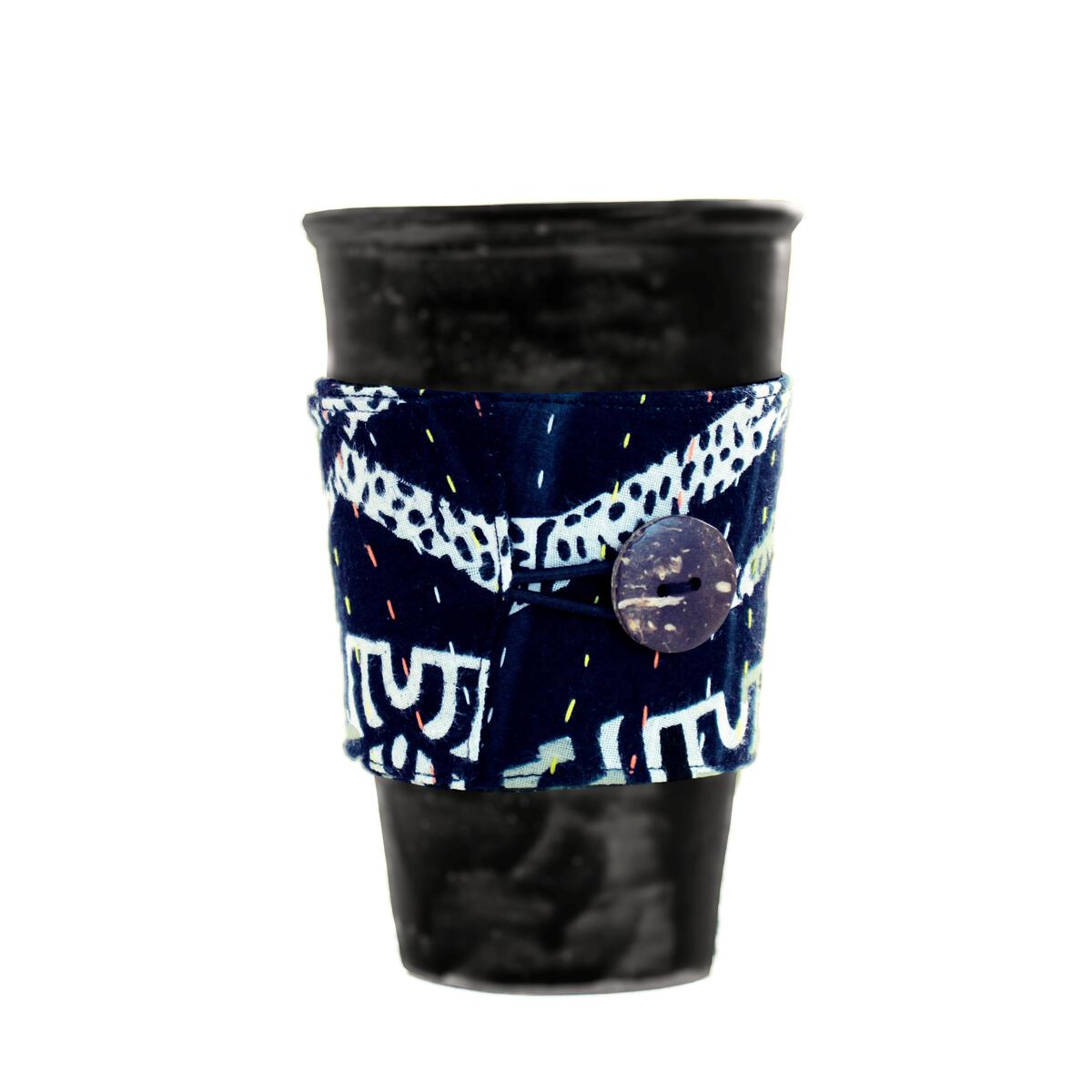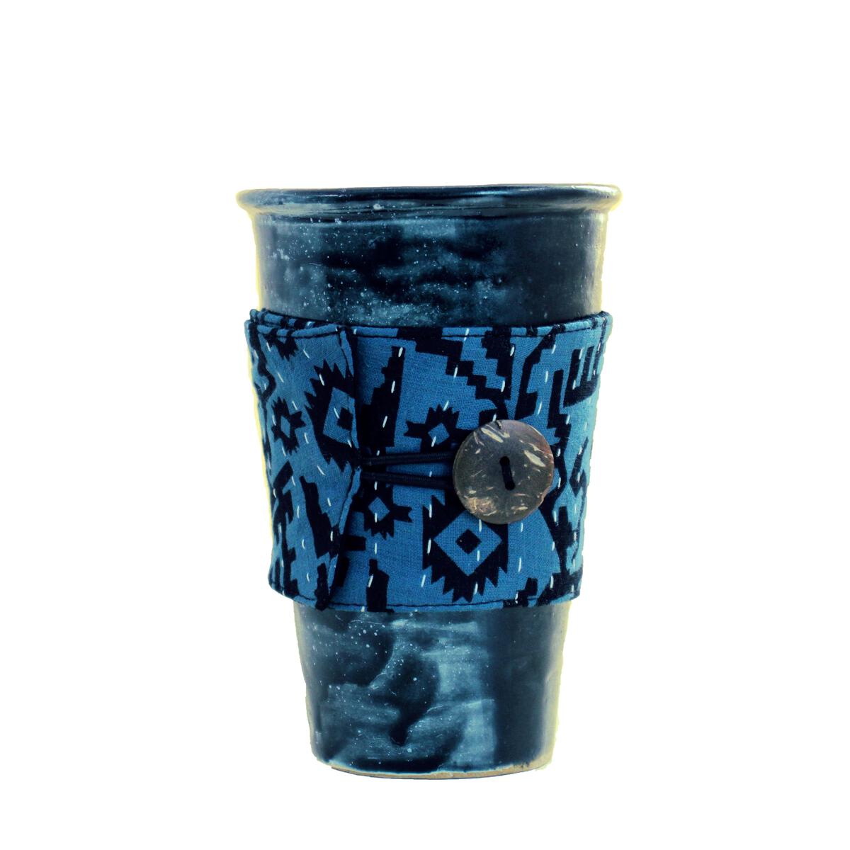 Reduce waste and look cool doing it with our kantha coffee cosey. This soft kantha reusable coffee cup sleeve protects your hands from heat without creating more trash. Fits most cups 12-20 oz. Available in vintage cotton or indigo dyed sari cloth.