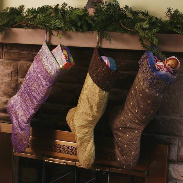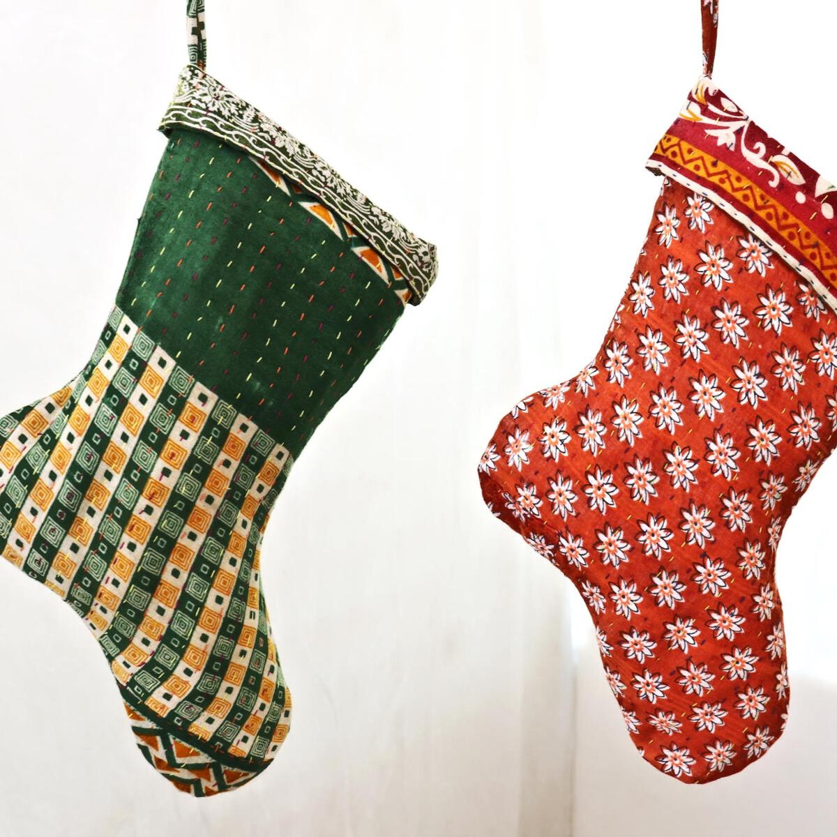 Our small kantha stockings are perfect to fill with gifts for Christmas.