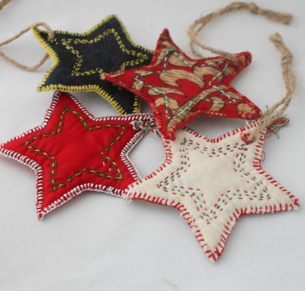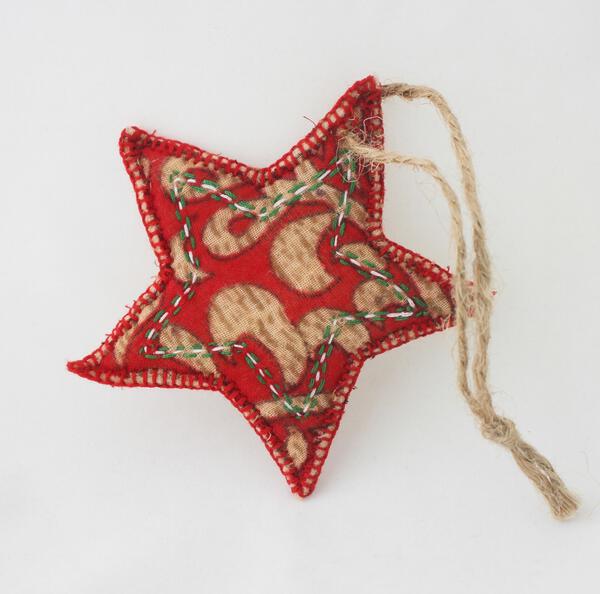 Celebrate Bangladeshi artistry with our handmade kantha star ornaments, crafted by skilled women artisans in Bangladesh. Each ornament is made from recycled cotton sari cloth, hand-stitched using traditional kantha embroidery and finished with a delicate blanket stitch edge.