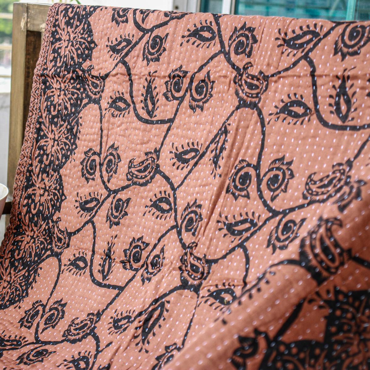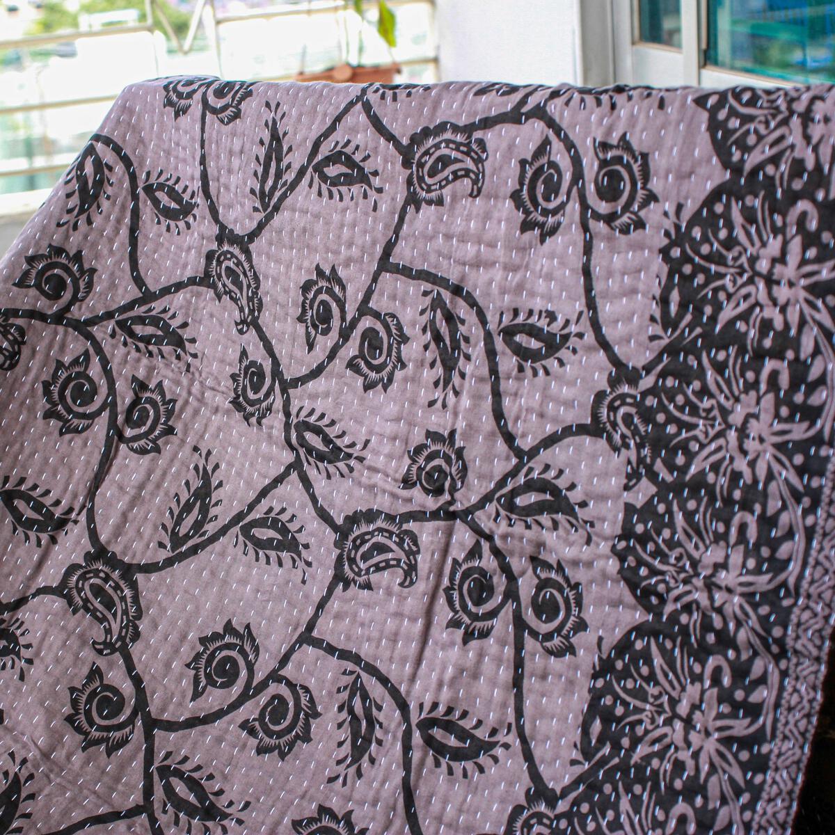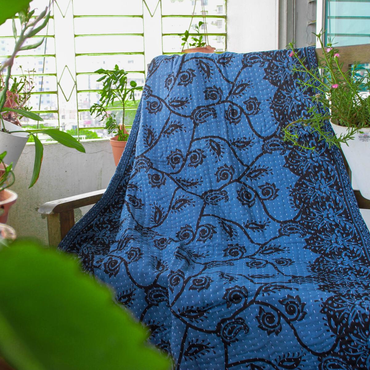 Sari’s with an exclusive paisley/floral pattern are dyed in indigo, grey and brown natural dyes.