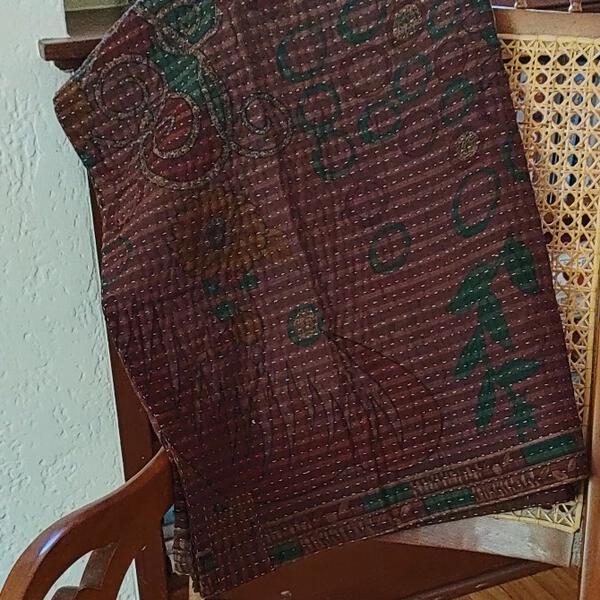 Standard Size Kantha, Natural Dye, Vintage Cotton