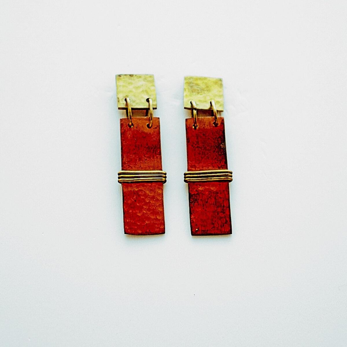 Textured copper and brass plates are linked with chain. Pair with our matching bangle
